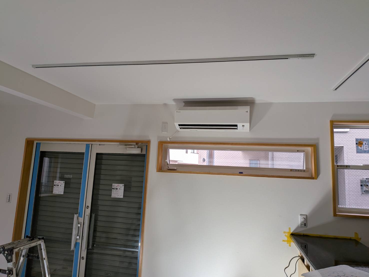 茅ヶ崎市内のアパートにて、エアコンの取り付け工事を行いました。入居者様が快適に過ごせるよう、室内の見た目にも配慮し、配管カバーや化粧ダクトを使用してスッキリとした仕上がりにしています。外壁部分は建物のデザインを損なわないよう、白のダクトで統...