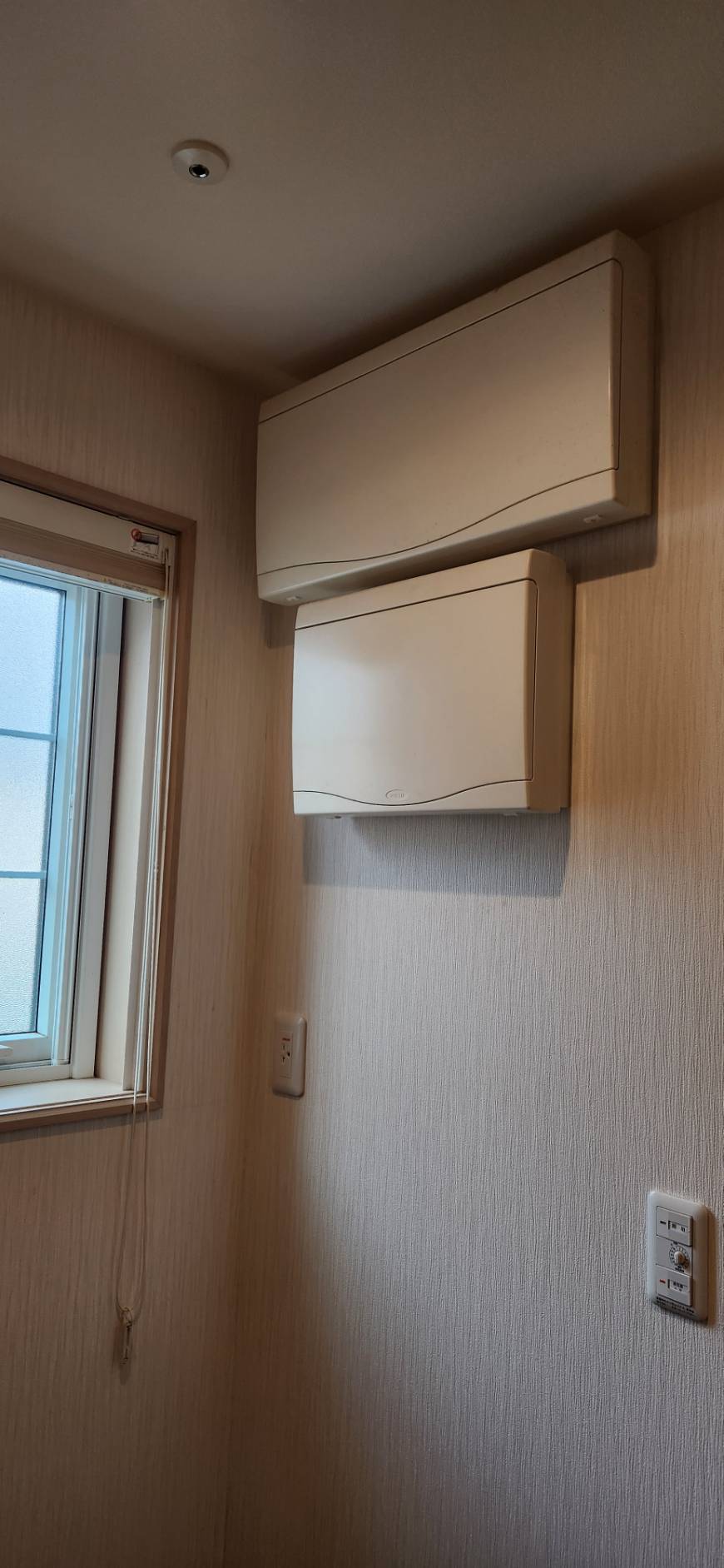 電気自動車充電設備に対応するため、200V専用回路を新たに分電盤へ増設しました。 施工前:既存の分電盤には空きブレーカーがなく、新しい回路を設けるためのスペースが必要でした。 施工後:新たに200V専用ブレーカーを増設し、充電用コンセン...