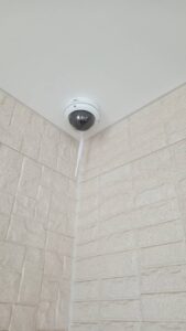 厚木市内にて、会社様の事務所内外の安全管理を目的に防犯カメラを設置しました。屋内カメラは来客・社員動線の監視を想定し、天井隅に設置することで死角を最小限に。屋外カメラは出入口付近を広範囲にカバーできる位置へ設置しています。配線も目立たないよう丁寧に施工し、事務所の美観を損なわない仕上がりにしました。防犯対策の強化と安心できる職場環境づくりをサポートしています。防犯カメラ設置はぜひ弊社にお任せください!